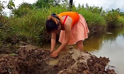 Asian slut pees outdoors
